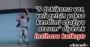 Kocaeli'de iş bulamadığını iddia eden şahıs, iş merkezinin üst katına çıkarak intihar teşebbüsünde bulundu. "5 dakikanız var, vali gelsin yoksa kendimi aşağıya atarım" diyerek ekiplere zor anlar yaşatan şahıs, 1 buçuk saatin ardından ikna edilerek aşağıya indirildi.