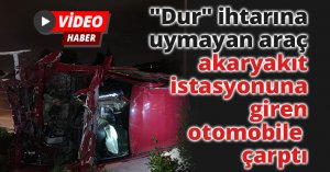 "Dur" ihtarına uymayan araç, akaryakıt istasyonuna giren otomobile çarptı.Polisten kaçarken kaza yapan otomobilin sürücüsü araç içinde sıkıştı