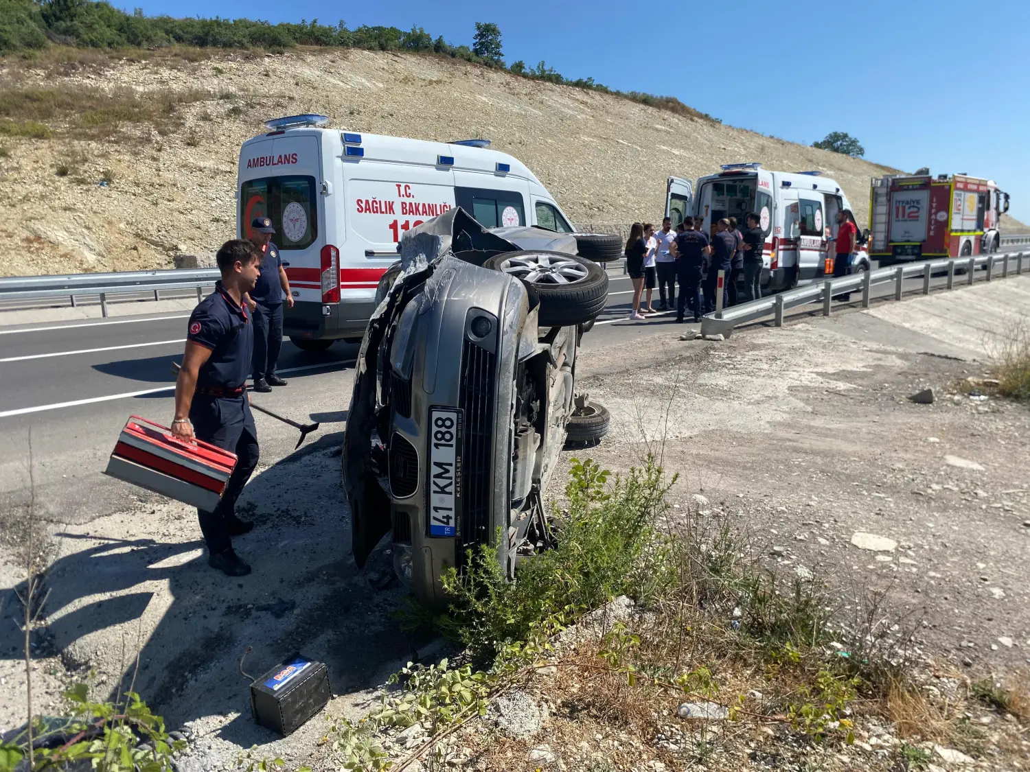 Kocaeli'nin Kandıra ilçesinde kontrolden çıkıp takla atan otomobildeki 5 kişi kazayı yara almadan atlattı.