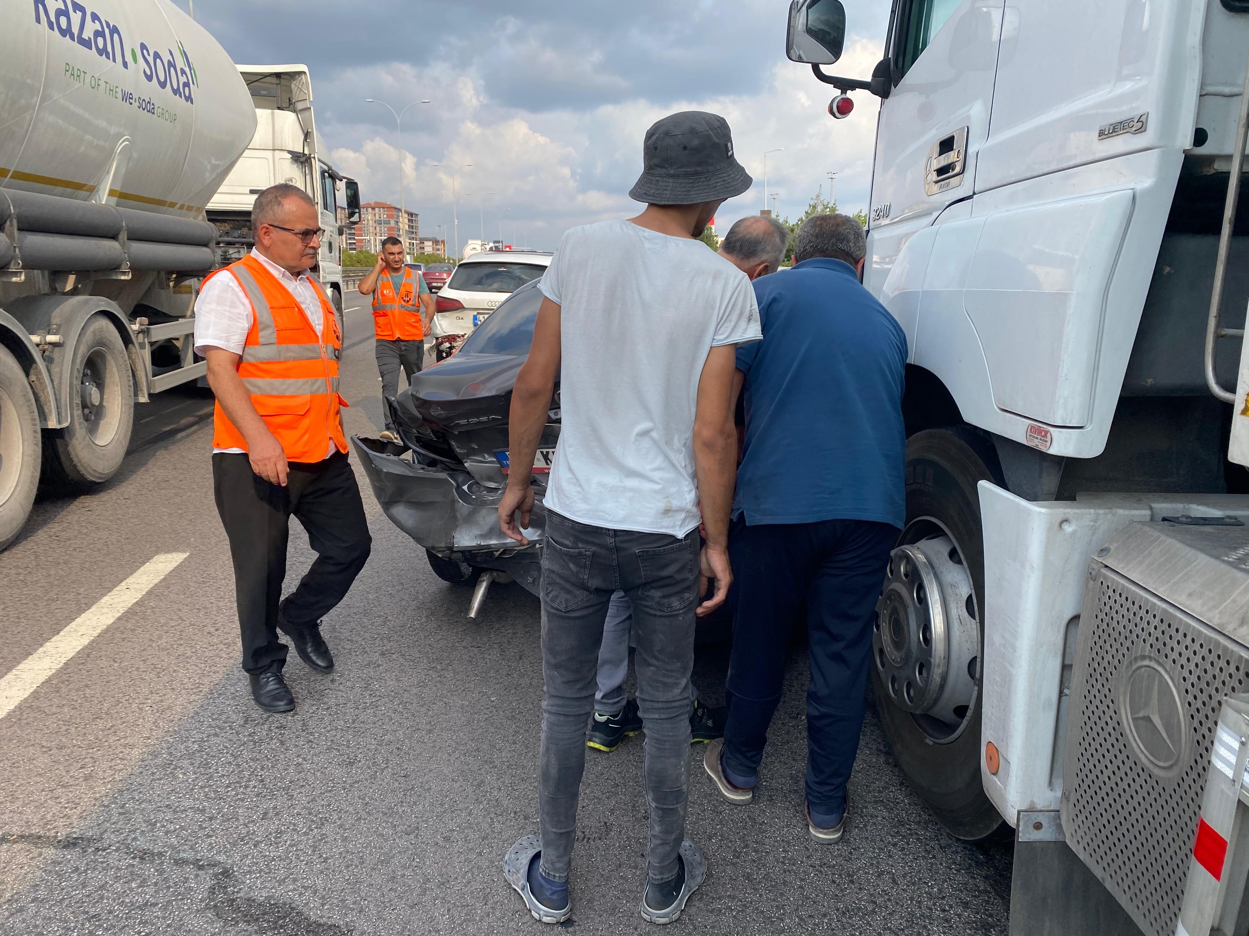 Kocaeli TEM Otoyolu'nda bir tır ve 3 otomobilin karıştığı zincirleme kazada şans eseri yaralanan olmadı. Araçlarda maddi hasar oluşurken, kaza sebebiyle trafikte yoğunluk oluştu.