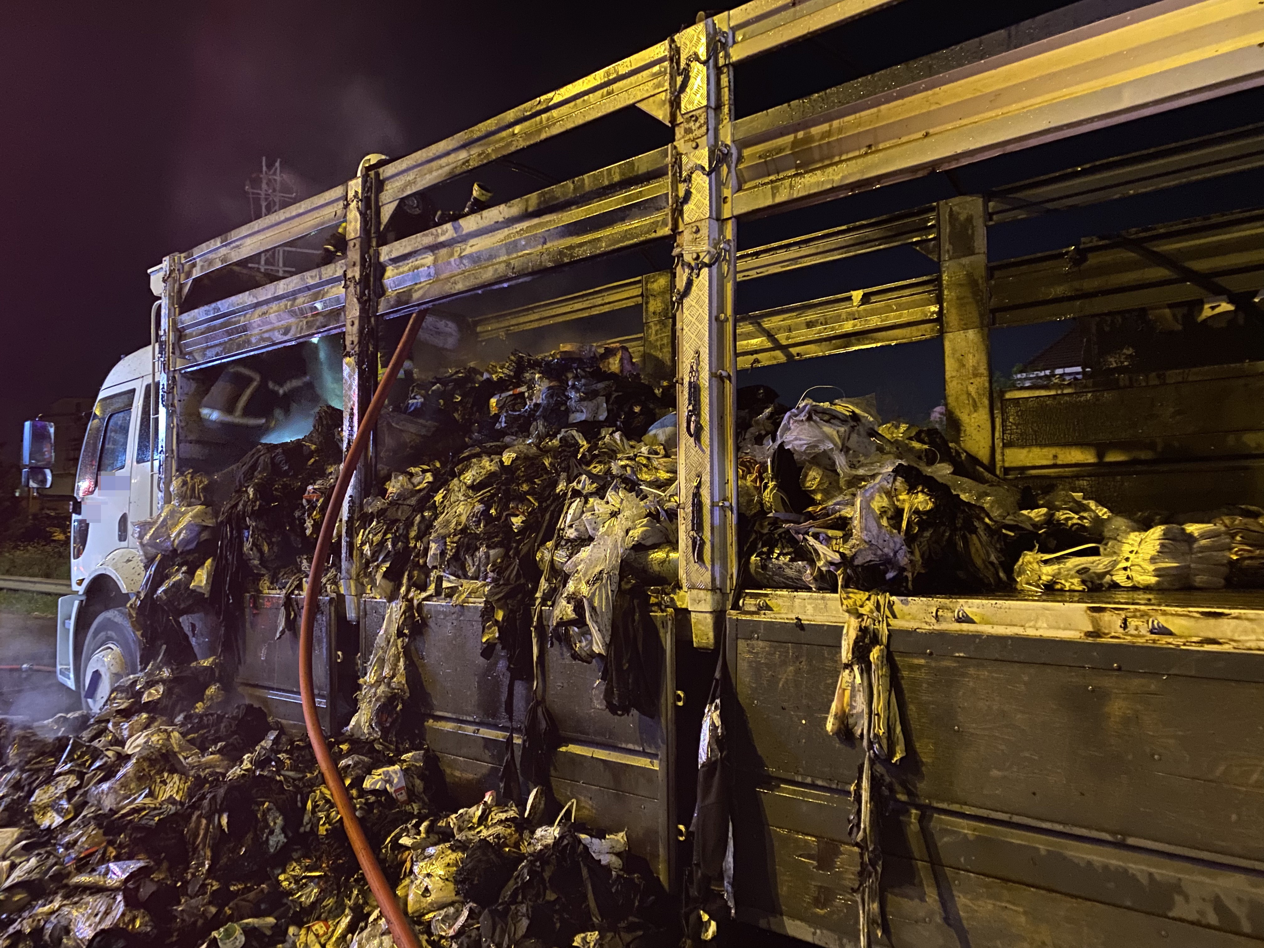 Kocaeli’nin Derince ilçesinde TEM Otoyolu üzerinde seyir halindeki tekstil yüklü bir kamyonda çıkan yangında, dorsedeki malzemeler tamamen yanarak kullanılamaz hale geldi.