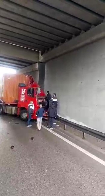 TEM Otoyolu'nun Kocaeli geçişinde bariyere ve beton duvara çarpan tırdan düşün sürücü, aracın altında kalarak hayatını kaybetti.