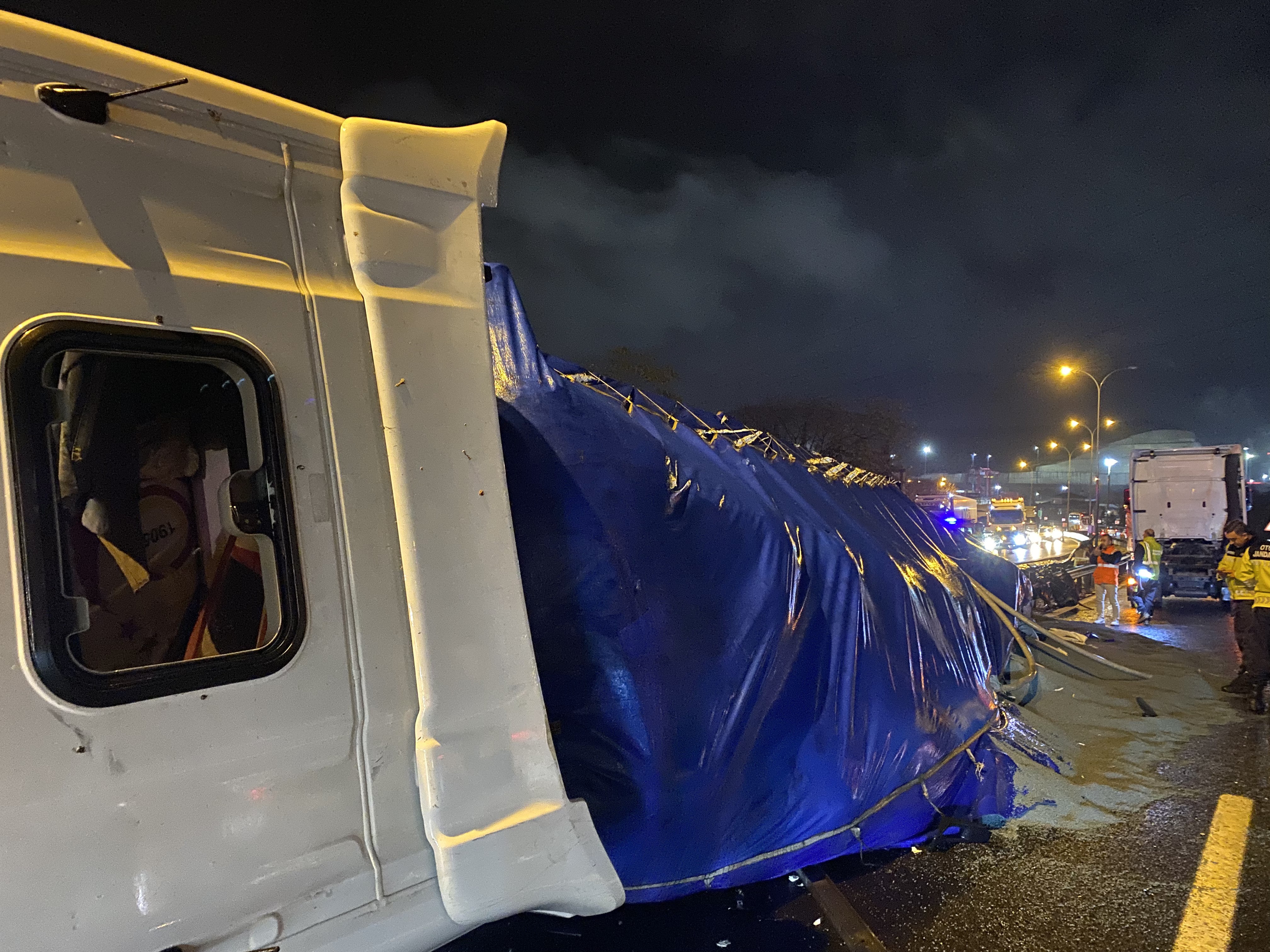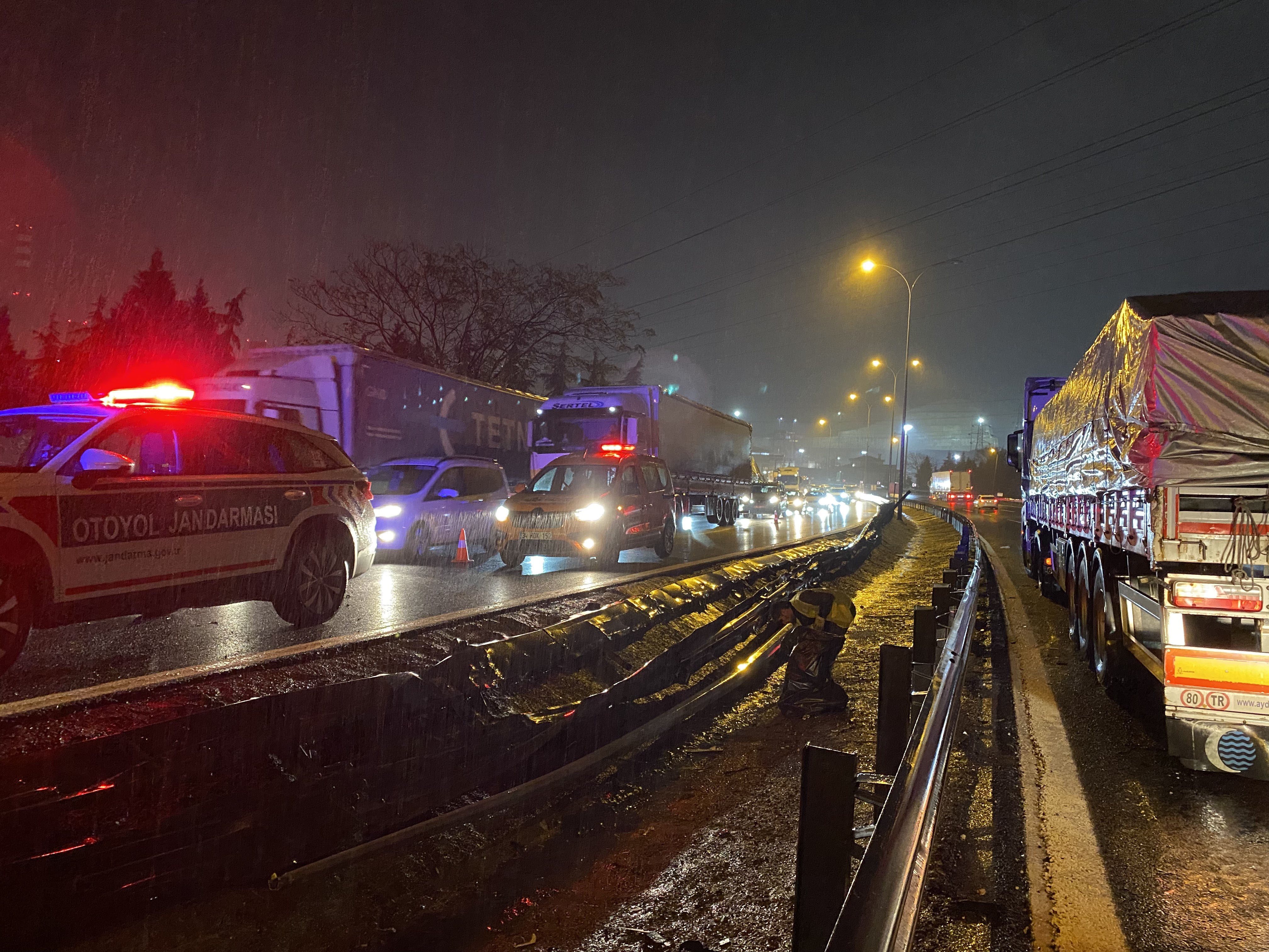 Tırın kasasından yola savrulan granül nedeniyle otoyolun her iki yönünde de trafik kontrollü olarak sağlandı. Kazayla ilgili inceleme başlatıldı.