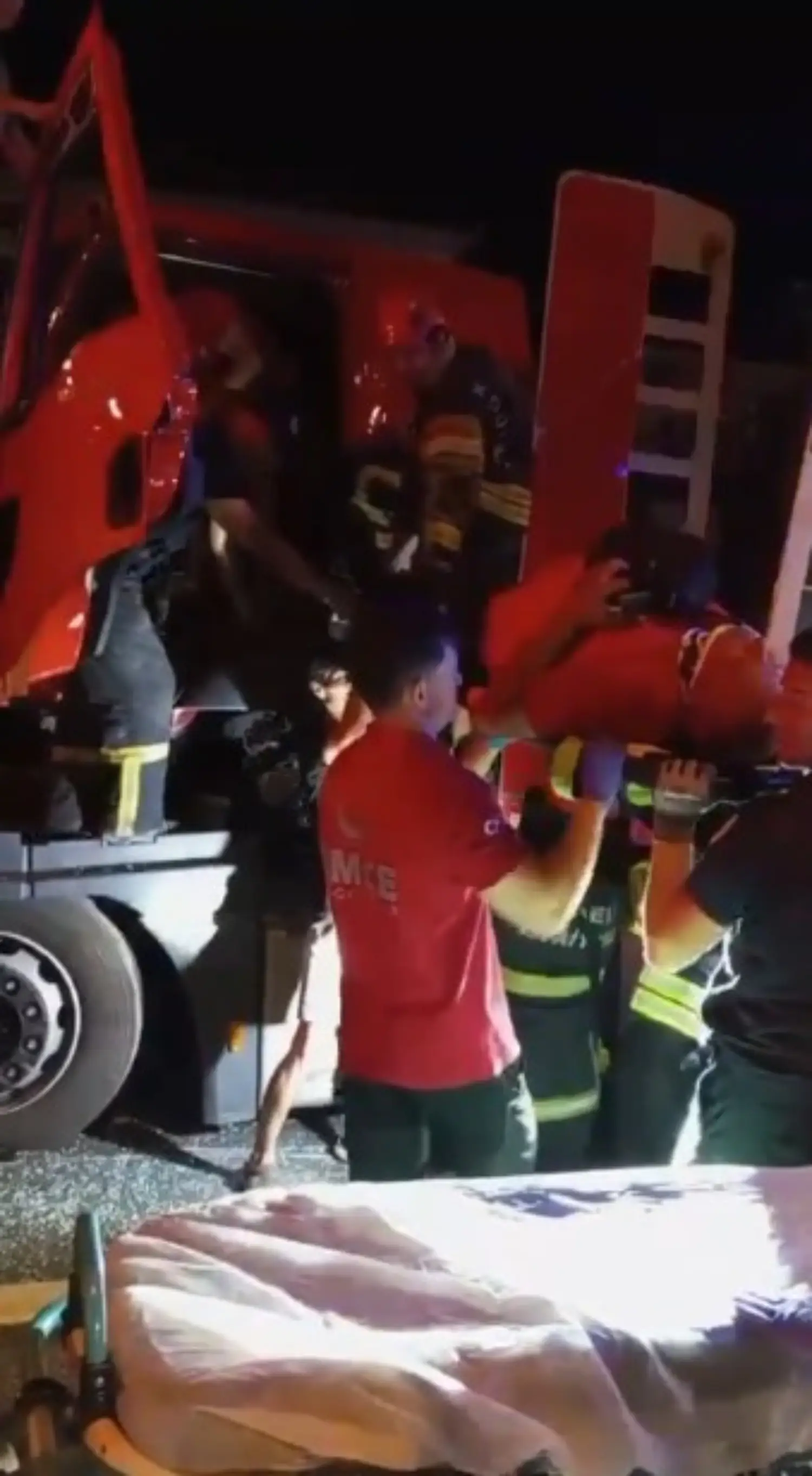 112 Acil Çağrı Merkezi'ne yapılan ihbar üzerine olay yerine itfaiye, sağlık ve polis ekipleri sevk edildi. Sıkışan sürücü, itfaiye ekipleri tarafından aracın kapısını kesilerek kurtarıldı. C.K., ilk müdahalesinin ardından hastaneye kaldırıldı. Kaza ile ilgili inceleme başlatıldı.
