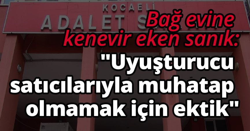 Kocaeli'nin İzmit ilçesinde bağ evinde Hint keneviri ekerek uyuşturucu madde ticareti yaptıkları iddia edilen 4 sanık hakim karşısına çıktı. Sanıklardan S.D., "Uyuşturucu satıcılarıyla muhatap olmamak için tutuklu sanık E.E. ile fındıklığına Hint keneviri ektik" dedi. Cumhuriyet savcısı ise mütalaasında 4 sanığın fikir birliği içinde hareket ettiğini belirterek, 20 yıldan 30 yıla kadar hapisle cezalandırılmalarını talep etti.