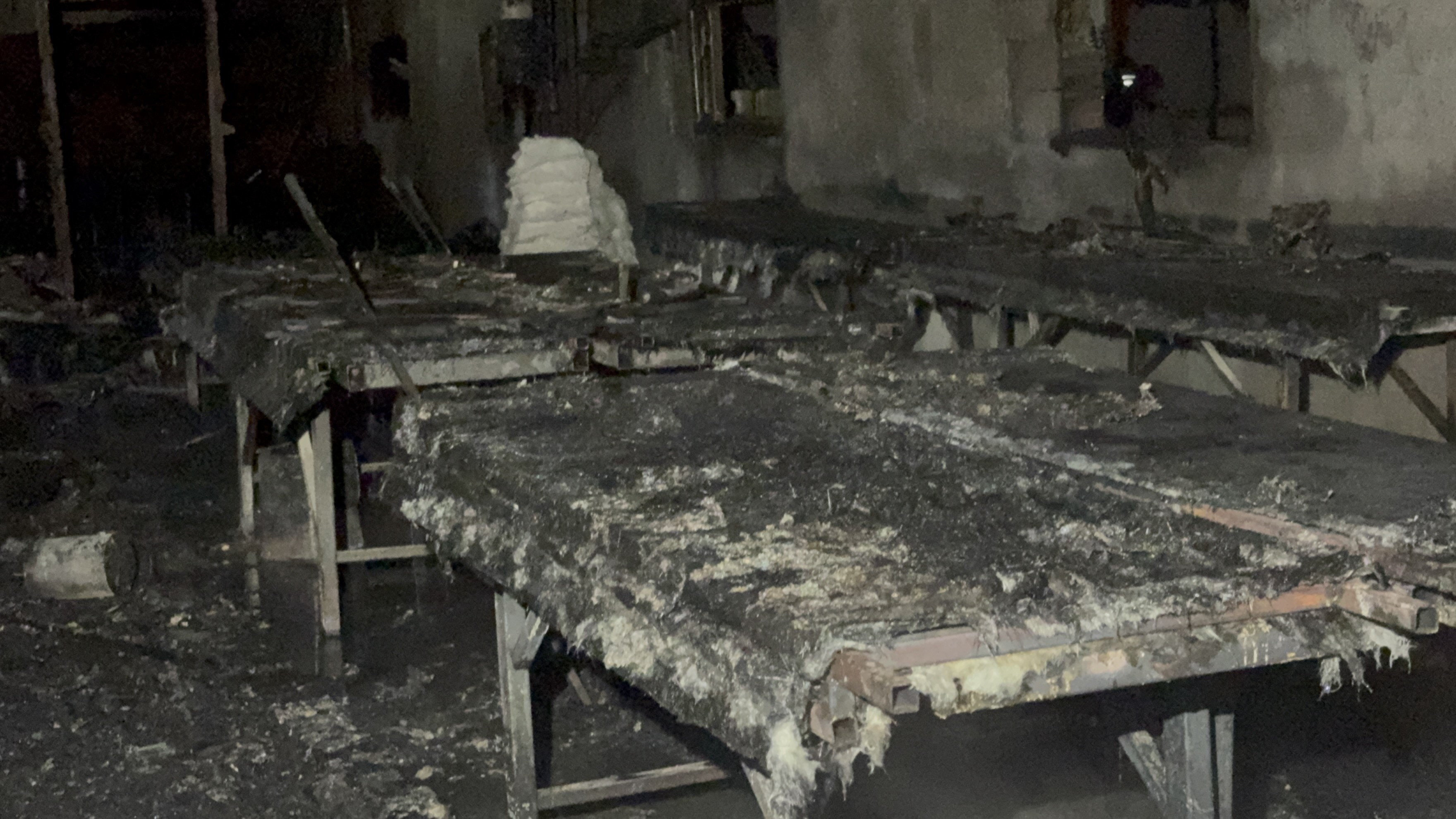 Yangın nedeniyle atölye kullanılamaz hale gelirken, ekiplerin soğutma çalışmaları devam etti.