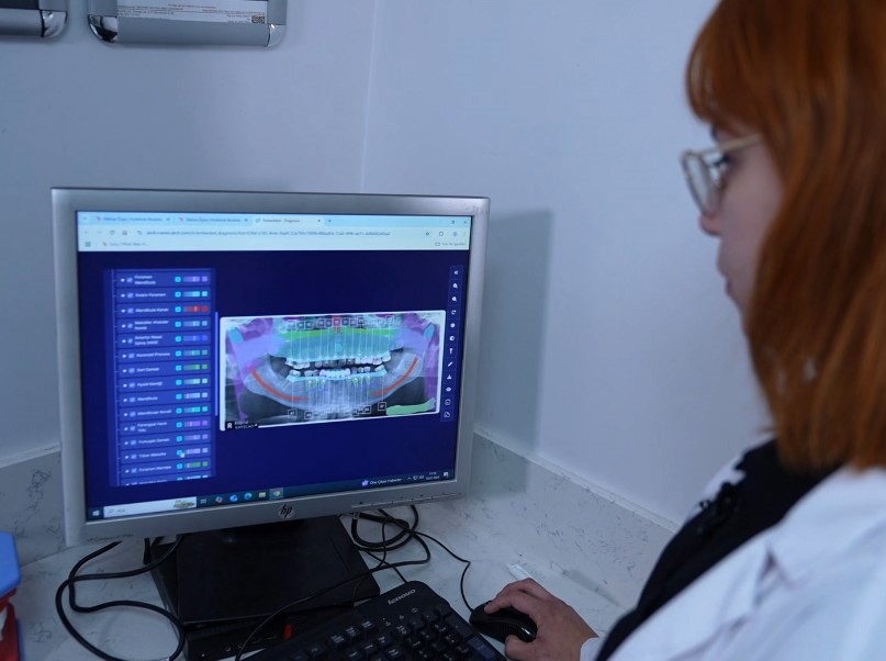 Yapay zekanın kişiye özel tedavi planlamasında oldukça yardımcı olduğuna dikkat çeken Melisa Öçbe, "Örneğin ortodontik tedavi veya implant planlamalarında hastanın mevcut kemik yapısına ve çenelerin birbirleriyle ilişkisine dayanarak hastaya özel bir tedavi planı çıkartmada çok yardımcı oluyor" dedi. Tedavi planı çıkarmanın da oldukça kolay olduğunu ifade eden Öçbe, "Tedavi planlaması butonuna tıklıyoruz ve bize dolgu yapılması gereken dişleri, çekilmesi gereken dişleri, hatta eksik dişlerin yerlerini, implant yapılması gereken yerleri dahi gösteriyor" diye konuştu.