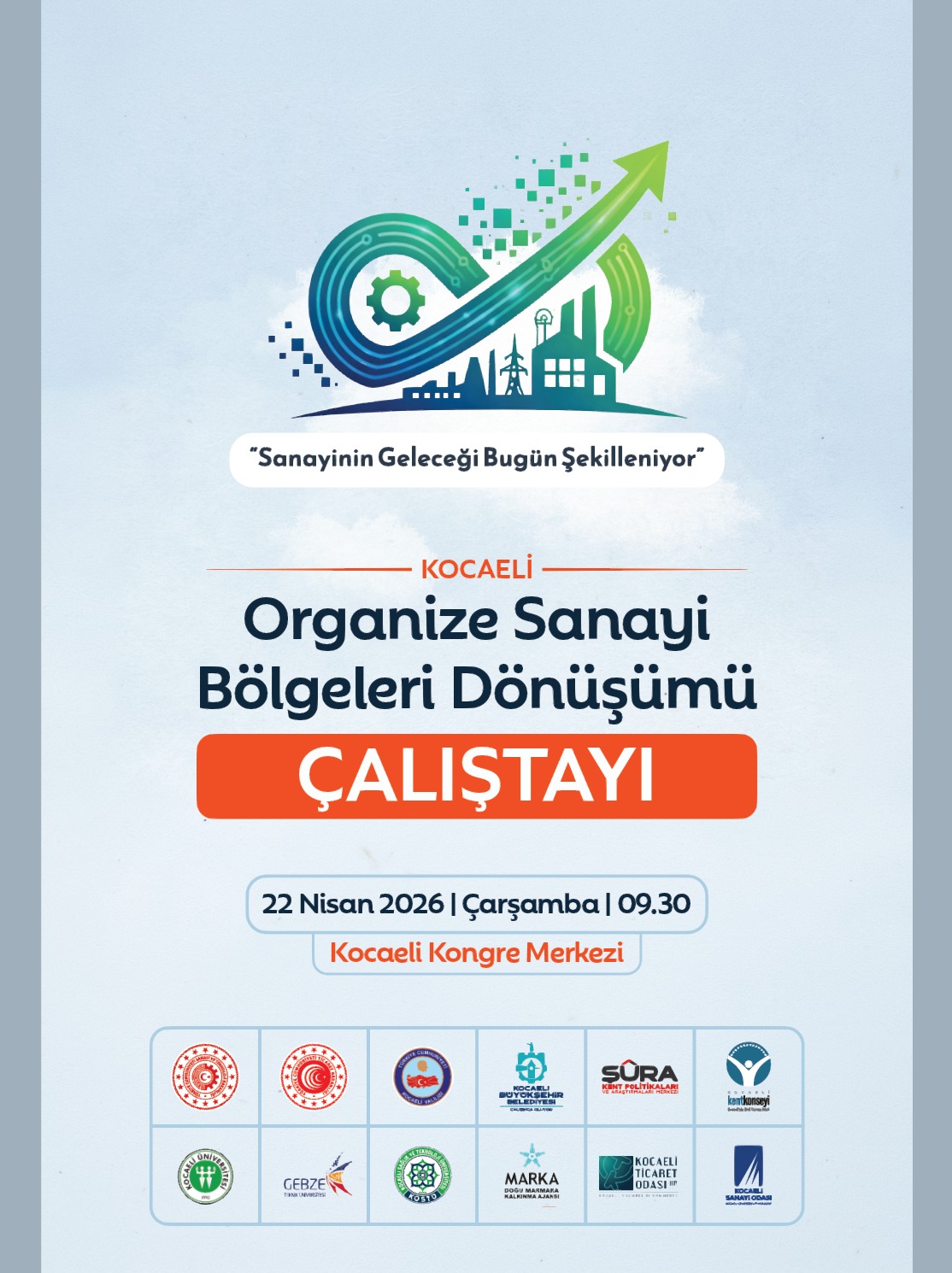 Kocaeli Üniversitesi ev sahipliğinde, Kocaeli Valiliğimiz ile Kocaeli Büyükşehir Belediyemiz işbirliğinde, Şura Kent Politikaları ve Araştırmaları Merkezi, Kocaeli Kent Konseyi, Gebze Teknik Üniversitesi, Kocaeli Sağlık ve Teknoloji Üniversitesi, Doğu Marmara Kalkınma Ajansı, Kocaeli Sanayi Odası ve Kocaeli Ticaret Odası paydaşlığında düzenlenecek olan “Kocaeli Organize Sanayi Bölgeleri Dönüşümü Çalıştayı”, 22 Nisan 2026 Çarşamba günü saat 09.30’da Kocaeli Kongre Merkezi’nde gerçekleştirilecektir.
