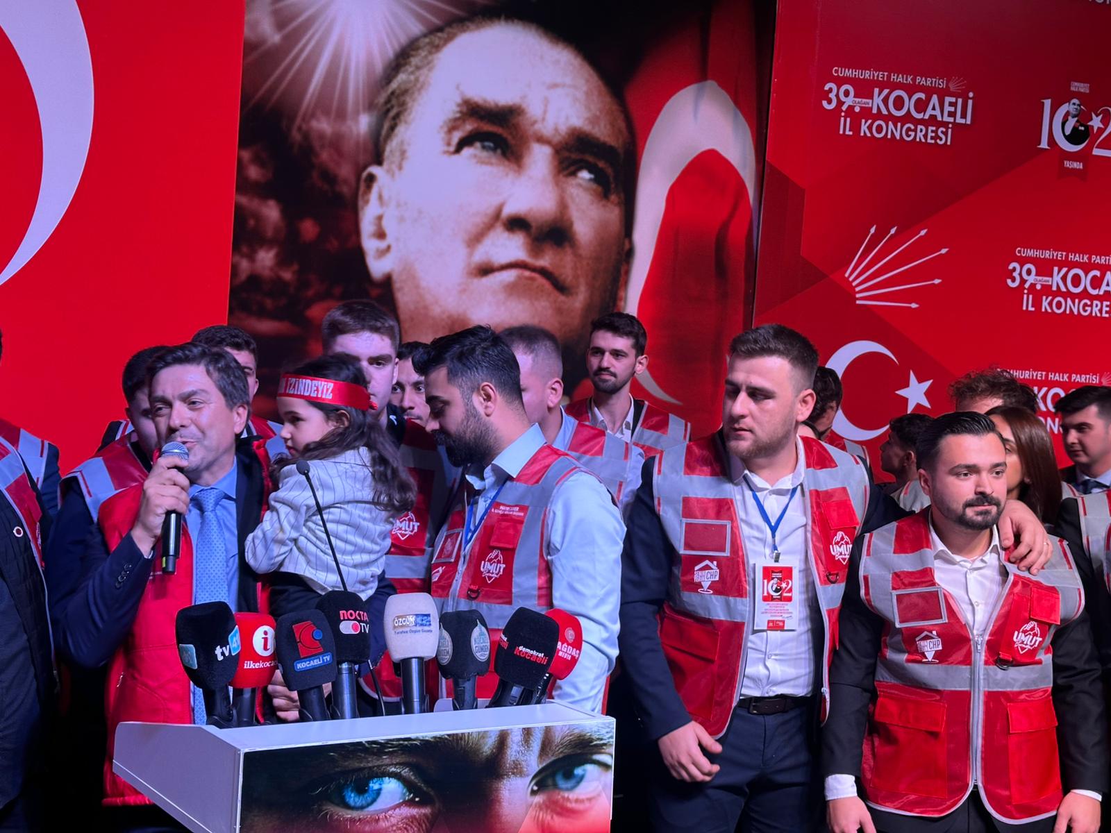 CHP Kocaeli İl Başkanı ve başkan adayı Bülent Sarı, kayyum tehditlerine ve parti içi tartışmalara karşı, “102 yıllık çınarı bölmek kimsenin haddi değildir, mücadelemiz millet içindir” diyerek salondan büyük alkış aldı.