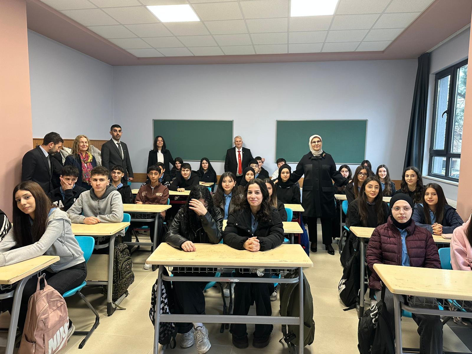 Yeni eğitim döneminde bir diğer önemli gelişme ise İzmit’te yaşandı. Yapılan incelemeler sonucunda riskli olduğu belirlenen eski binanın boşaltılmasının ardından, Namık Kemal Anadolu Lisesi yenilenen yapısıyla yeniden öğrencilerini ağırlamaya başladı. Yeni okul binası tamamlanana kadar Kanuni Mesleki ve Teknik Anadolu Lisesi’nin öğrenci ve öğretmenleri de bu binada eğitim görecek. AK Parti Kocaeli Milletvekili Radiye Sezer Katırcıoğlu, ikinci dönemin ilk gününde öğretmen ve öğrencilerle bir araya geldi.