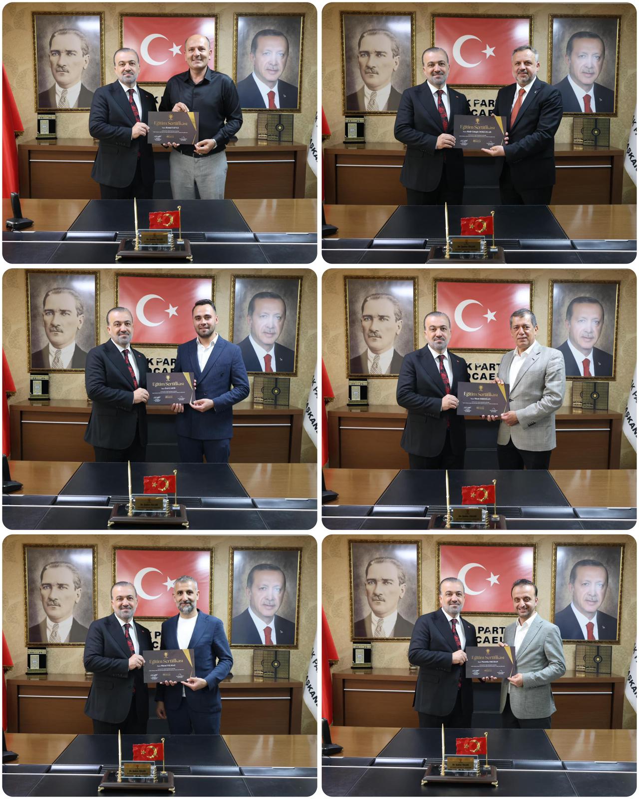 AK Parti Kocaeli İl Başkanı Dr. Şahin Talus, Ankara Genel Merkez’de düzenlenen eğitim programına katılım sağlayan ilçe başkanlarına sertifikalarını takdim etti.