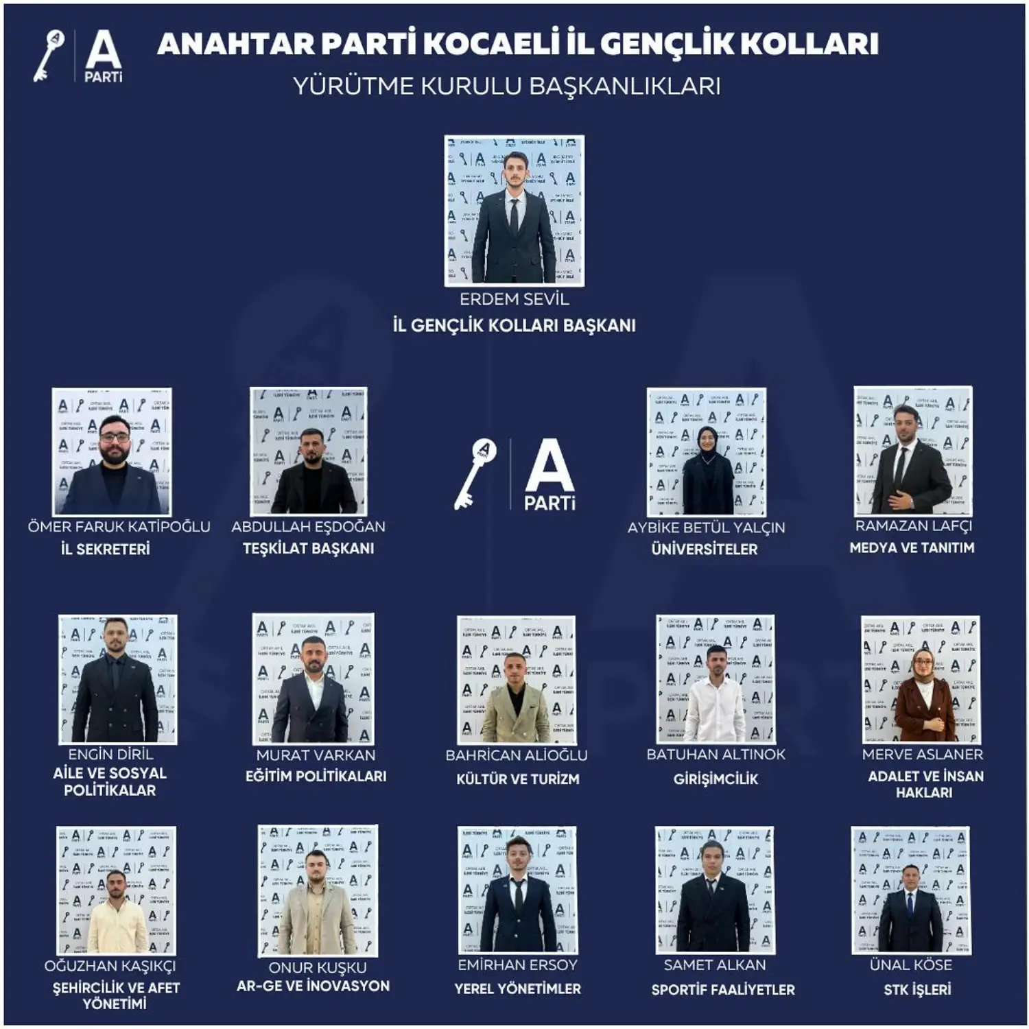 Anahtar Parti Kocaeli İl Gençlik Kolları, yeni yürütme kurulunu kamuoyuna tanıttı. İl Başkanı, “Liyakatli ve ahlaklı genç kadromuz şehrimize ve siyasete örnek olacak” dedi.