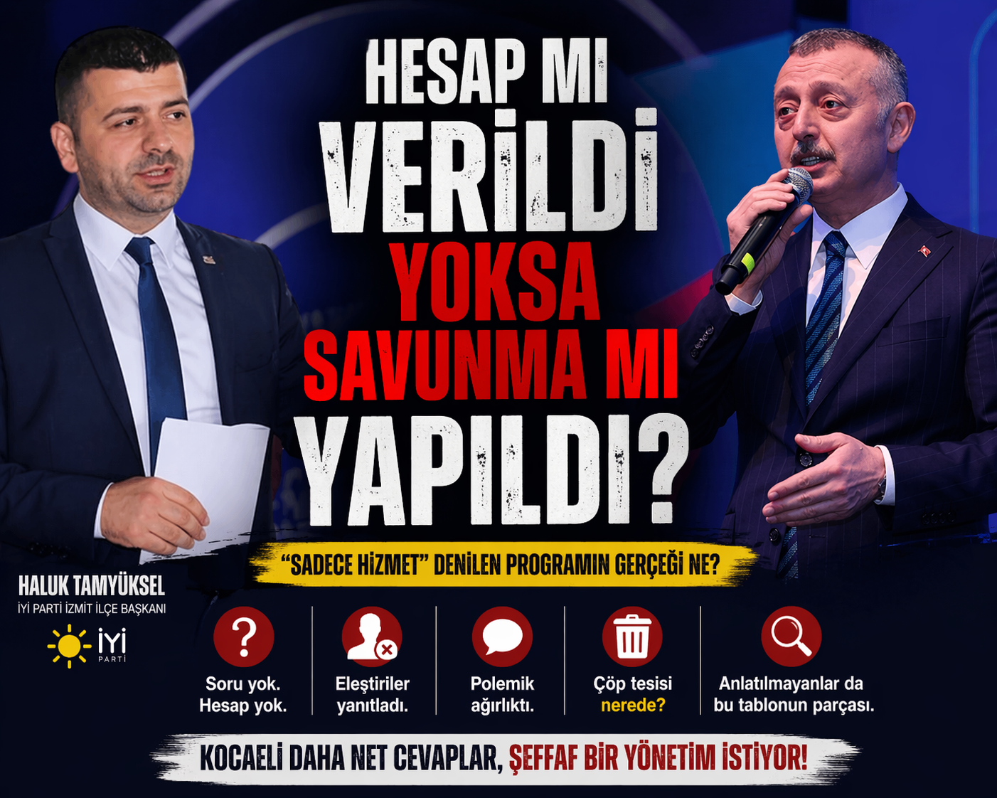 Bugün İzmit’te insanların hâlâ net cevap beklediği başlıklar varsa, orada konuşulması gereken şey sunumun kendisi değil, eksik kalan taraflardır.”
