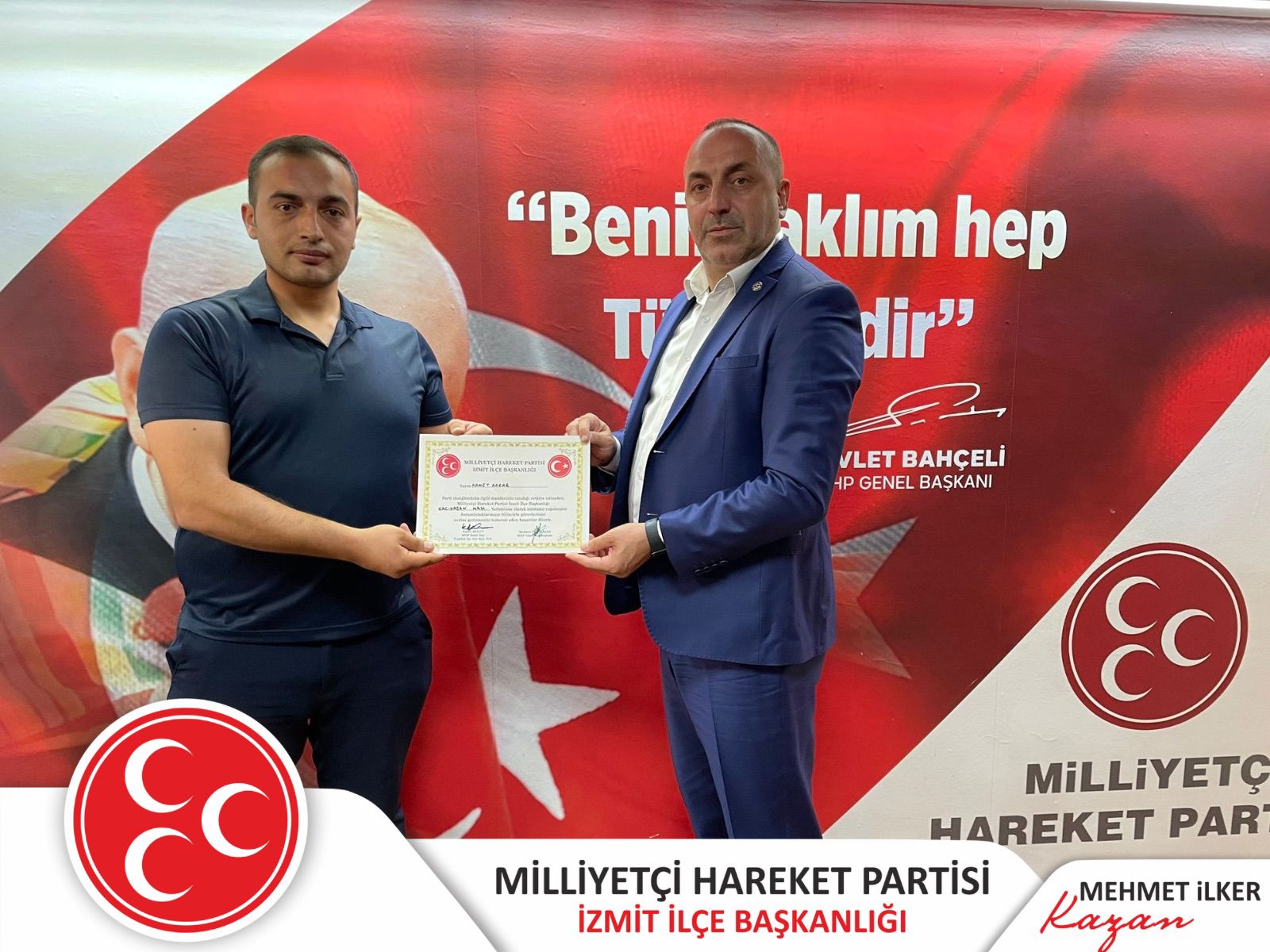 MHP İzmit İlçe Başkanı İlker Kazan, 4 mahalleye daha atama yaptı. Buna göre; Ahmet Kaçar – Hacıhasan Mahallesi Mahalle Başkanı, Halil İbrahim Yılmaz – Kemalpaşa Mahallesi Mahalle Başkanı, Arda Toy – Yenişehir Mahallesi Mahalle Başkanı, Osman Kahramanoğlu – Hacıhızır Mahallesi Mahalle Başkanı oldu.