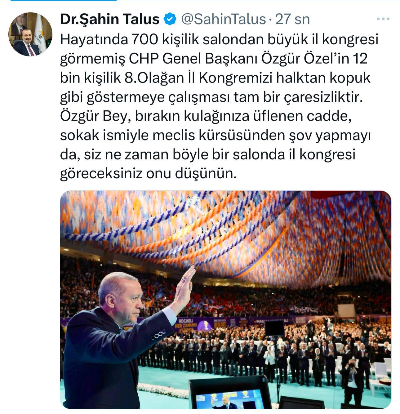 Talus, sosyal medya üzerinden yaptığı açıklamada, Özgür Özel’in büyük çaplı bir kongre görmemiş olmasını eleştirerek şu ifadeleri kullandı: