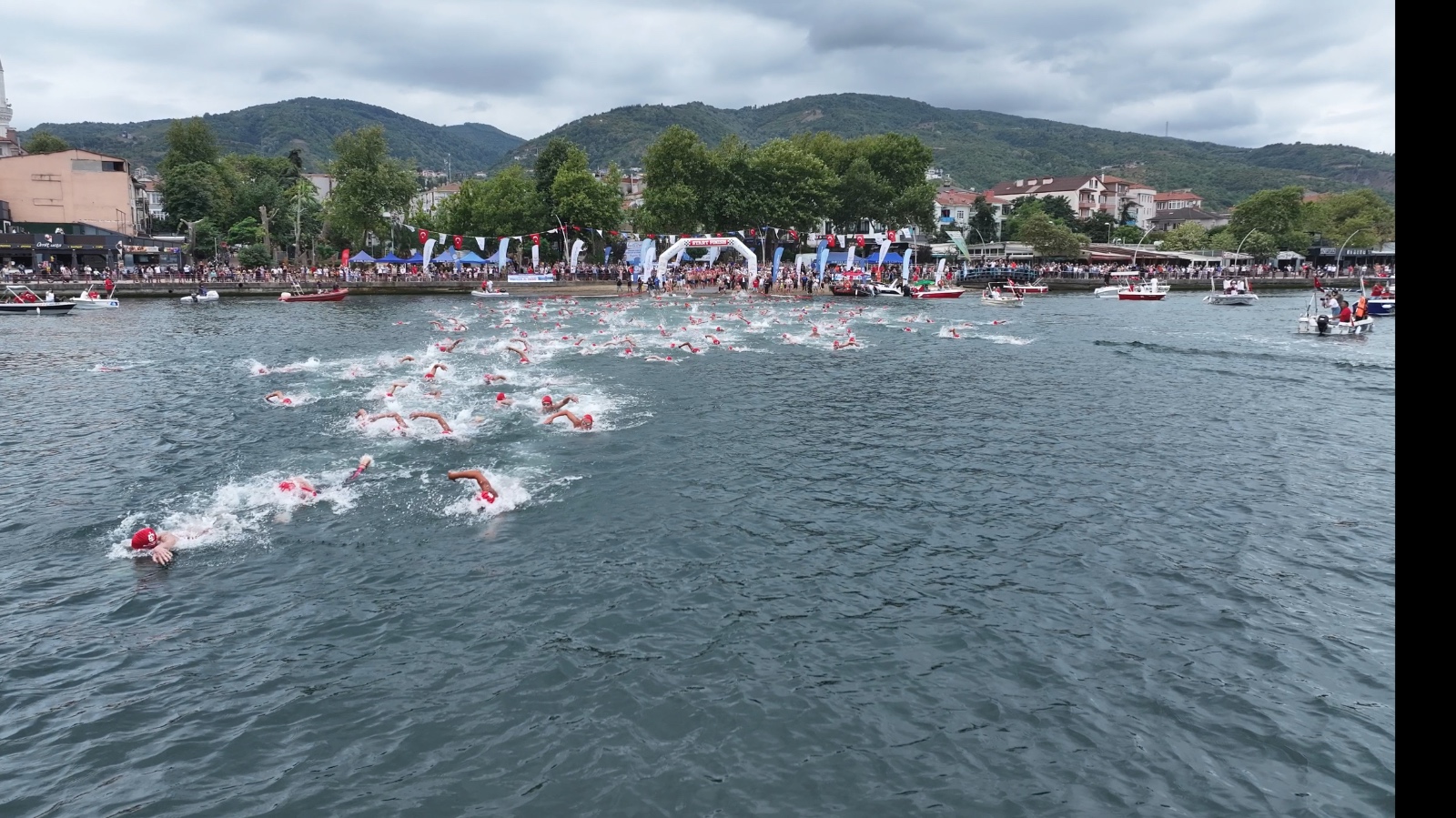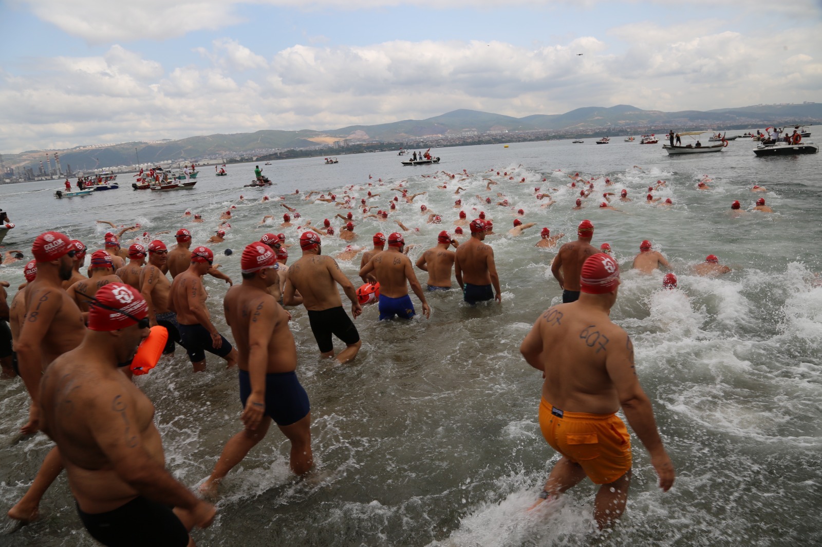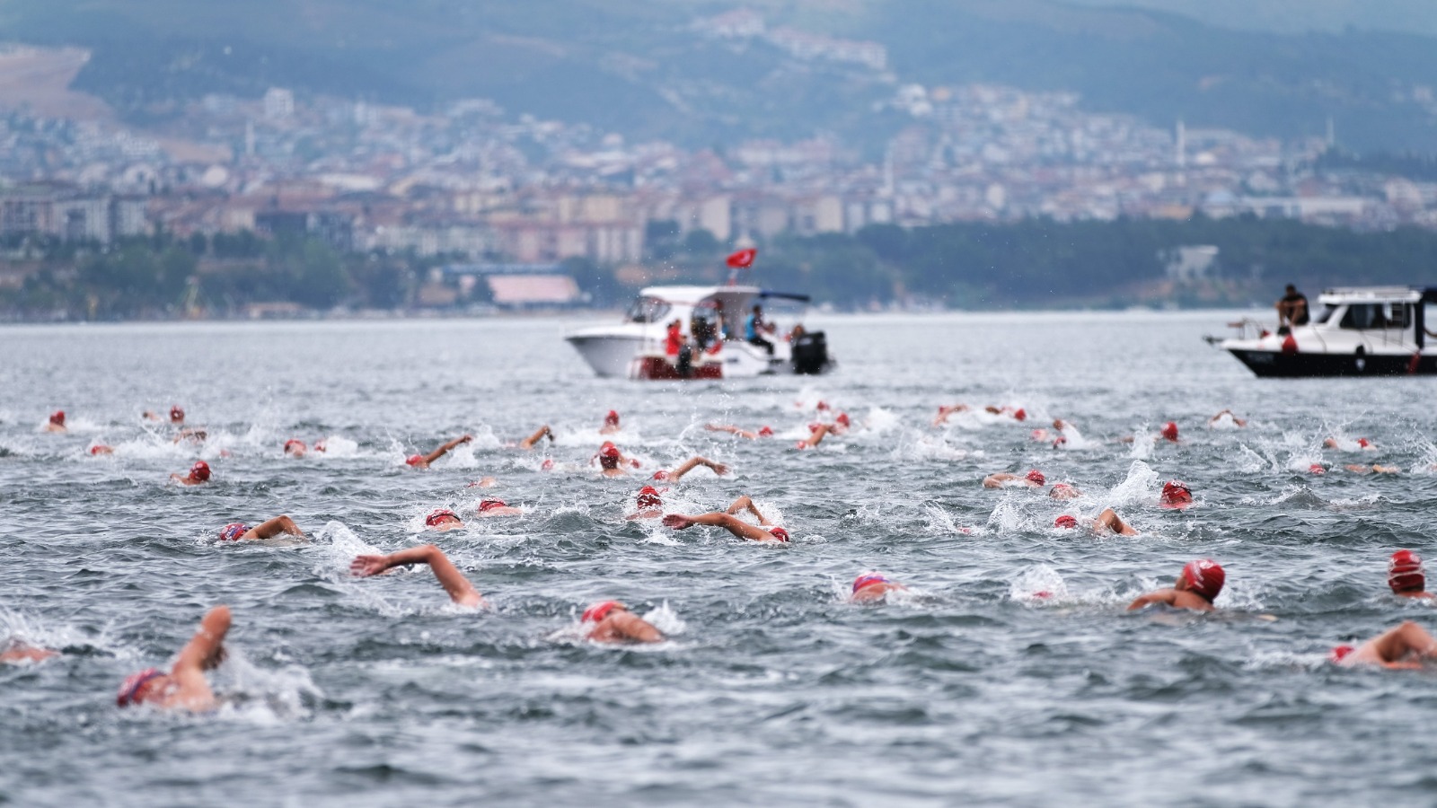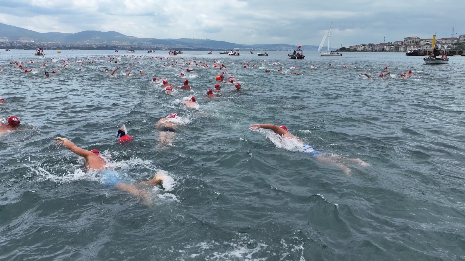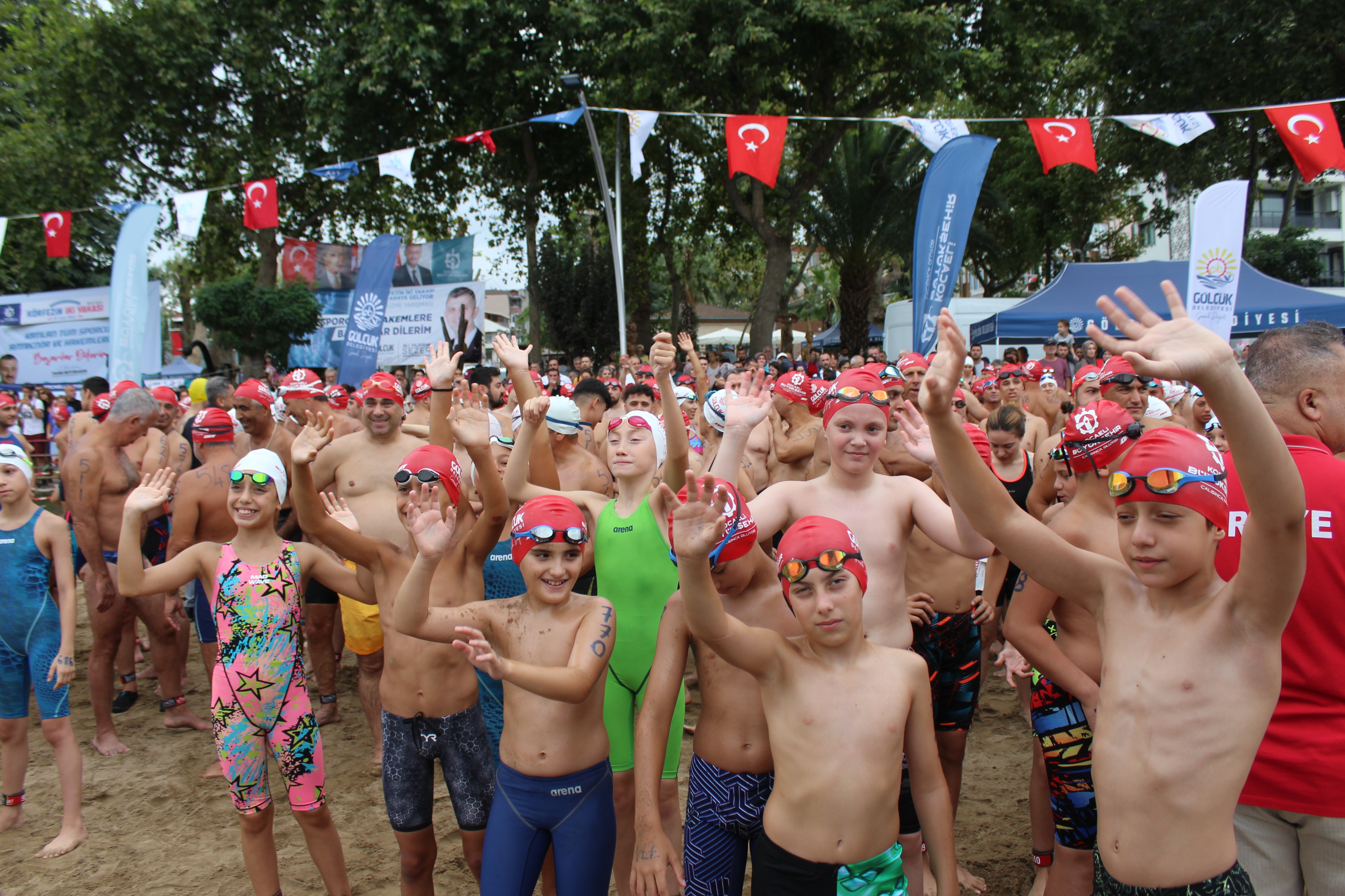 İzmit Körfezi'nin iki yakasını bir araya getiren açık yüzme yarışında nefesler tutuldu. Heyecan dolu anların yaşandığı yarışmada en küçüğü 11, en büyüğü 75 yaşında olan 343 yarışmacı, 2 bin 650 metre kulaç attı.