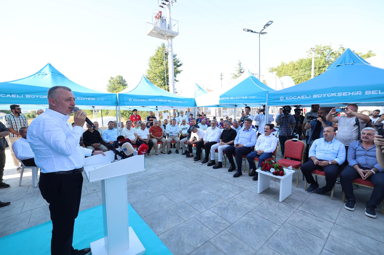 Protokol üyelerini ve genç sporcuları selamlayarak konuşmasına başlayan Büyükşehir Belediye Başkanı Doç. Dr. Tahir Büyükakın, “Bugün bizim için gerçekten 3’ü bir arada bir gün oldu. Gerçekten güzel bir hizmet. Daha önce de projenin hazırlıklarını yaparken konuşmuştuk. Bu bölgede futbol geleneği var. Burası bölgenin uzun süredir talep ettiği bir tesis. Başta Ateşspor olmak üzere komşu ilçelerin de kullanacağı FIFA standartlarında bir saha. Giyinme, soyunma ve diğer tüm ihtiyaçları karşılayabilecek yaklaşık 1250 metrekare büyüklüğünde kapalı alanı olan bir bina var. Kartepe’ye ve Başiskele’ye hayırlı olsun. Siz biz yok Kocaeli’mize hayırlı olsun. Şimdi ufak bir gösteri maçı yapacağız” ifadelerini kullandı.