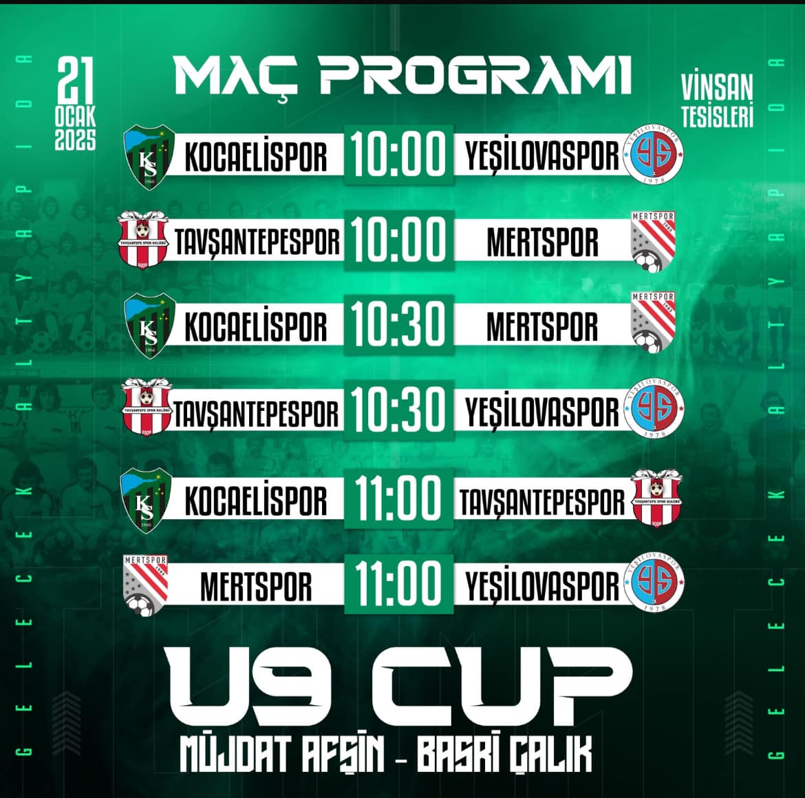 Turnuvada Kocaelispor, Yeşilovaspor, Tavşantepespor ve Mertspor’un minik yetenekleri kıyıyasıya mücadele edecek. Bu özel organizasyon, hem geleceğin futbolcularının kendilerini göstermesi hem de unutulmaz iki ismi onurlandırmak için büyük bir fırsat olacak. Kocaelispor altyapısından çıkan ve şehrimize katkıda bulunmuş Müdjat Afşin ile Basri Çalık’ı bir kez daha sevgiyle anarken, sahada yeteneklerini sergileyecek minik yıldızlara başarılar diliyoruz.