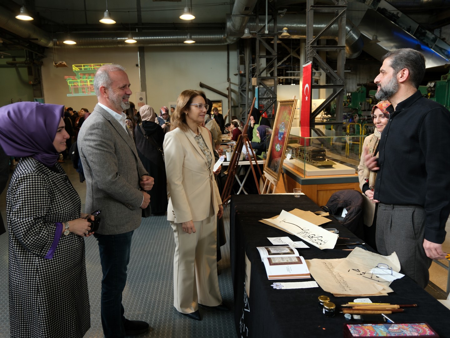 Programın en dikkat çeken anı, Doç. Dr. Yusuf Parlak’ın canlı performansı oldu. İzleyicilerin katılımıyla, geleneksel yöntemlerle kağıttan dünyanın en büyük Türk bayrağı oluşturuldu. Bu eşsiz eser tüm misafirlerden büyük ilgi gördü.