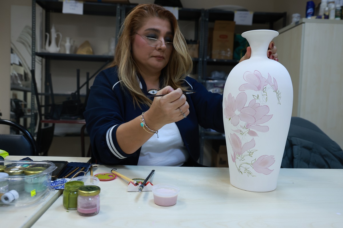 Emekli olduktan sonra yıllardır gitmek için fırsat kolladığı çini işlemeciliği kursuna başlamaya karar veren Ferhunde Kasap, hobi olarak başladığı kursta artık yaptığı ürünlerini satarak ev ekonomisine katlı sağlıyor. “Bu işi öğrenir, yaptıklarımı yakın çevreme hediye ederim” diye yola çıkan Kasap’ın yaptığı bir ürünün çok beğenilip satın alınması bu işe dört elle sarılmasına teşvik oldu.