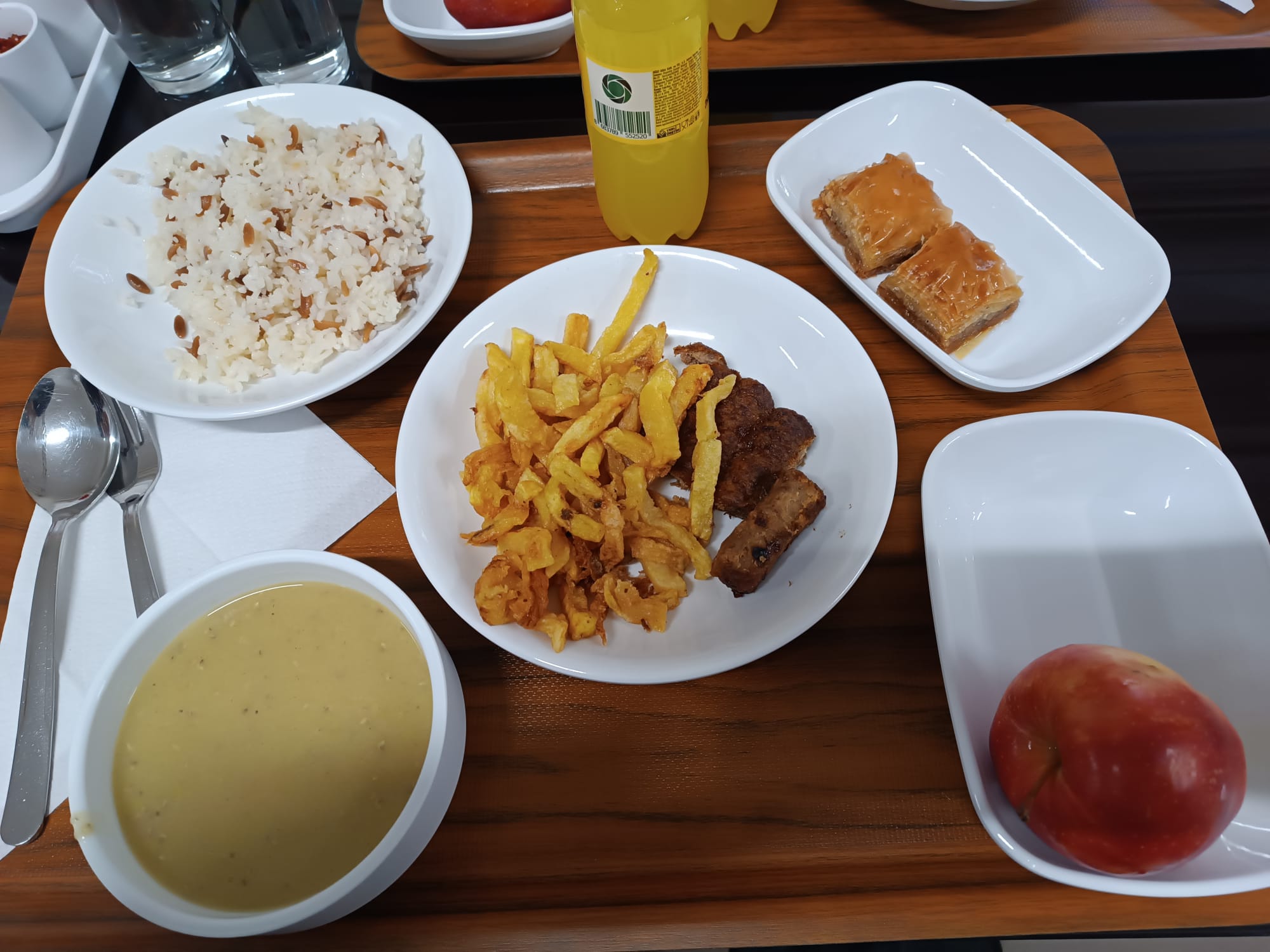 Cezaevi müdürü ile genç mahkumlar hakkında sohbet ettik. Yakın zamanda tahliye olan iki çocuk mahkumdan söz etti; “Bir aile çocuklarını almak üzere İstanbul’dan geldi. Diğer çocuğumuzu almaya gelen olmadı. Kaymakamlığa teslim ettim” dedi. “Şimdi o çocuk benim burada yedirdiğim şu 6 kap yemeği yiyebiliyor mu?” diye ekledi. Evet Cezaevinde hükümlü ve tutuklulara öğle yemeğinde 6 çeşit yemek veriliyor. Müdür beyden izin alarak önümüzdeki yemek tabldotunun fotoğrafını aldım; “Bu yemekler aynen hükümlü ve tutuklulara da veriliyor” dedi.