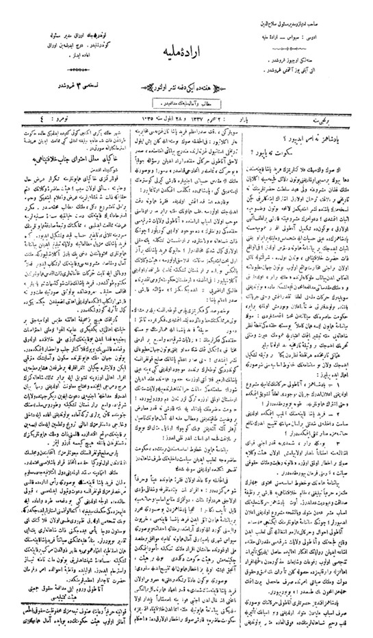 28 Eylül 1919 Tarihli İrade-i Milliye (Sivas) Gazetesi Sayfa 1
