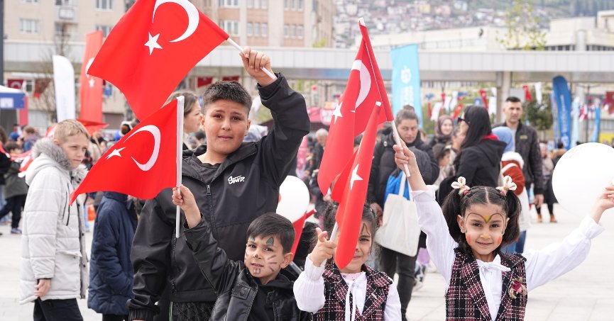 Minik ellerde bayrak, yüzlerde tebessüm;